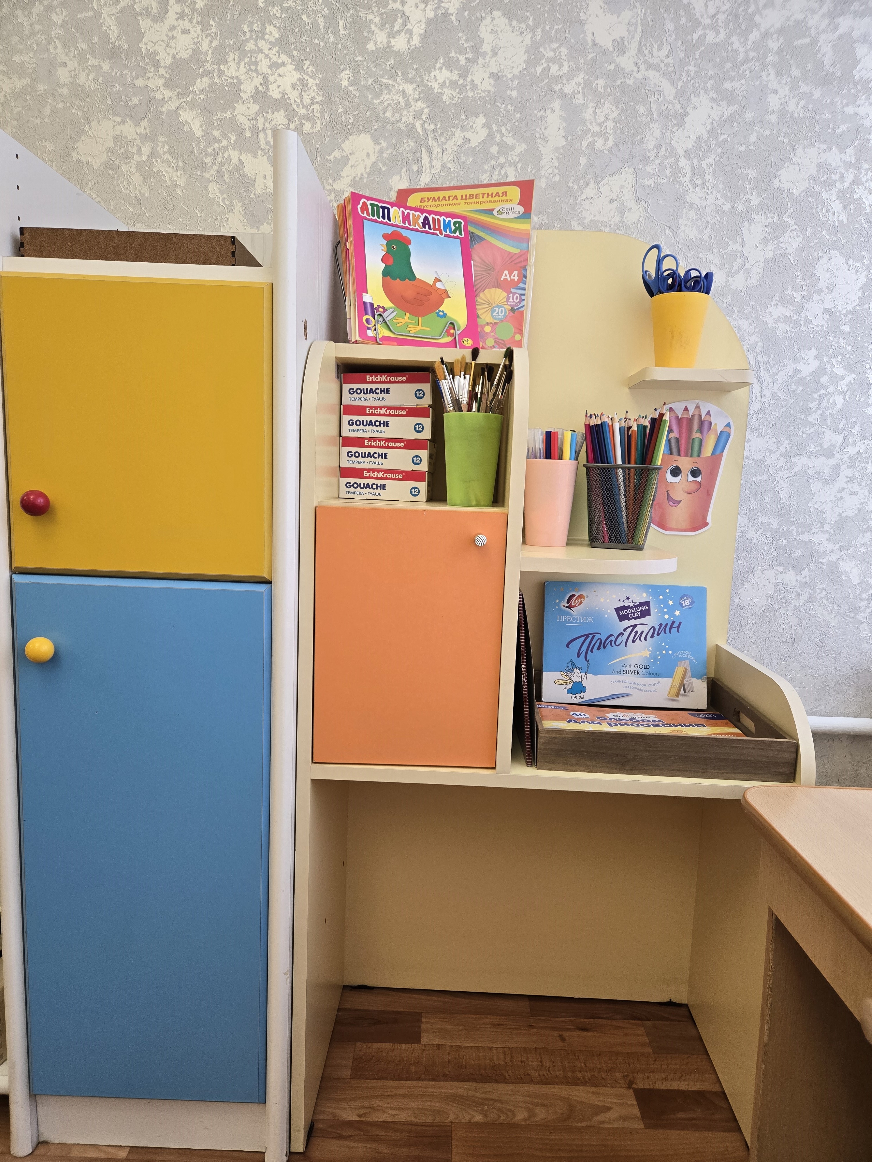 : набор акварельных красок набор гуаши набор цветных карандашей набор фломастеров набор ножниц набор цветной бумаги набор цветной картон набор белый картон набор бархатной бумаги кисточки разных номеров точилки, ластики пластилин трафареты альбомы для рисования фартучки для творчества